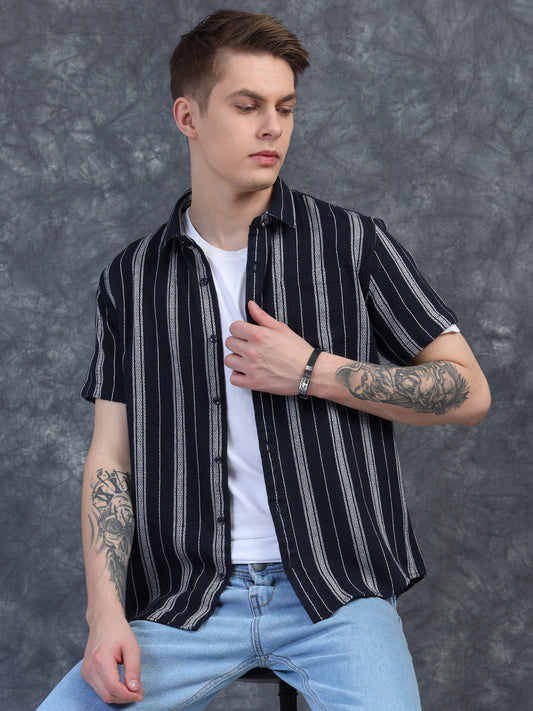 -46% OFFBlack Stripes Half Sleeves Shirt