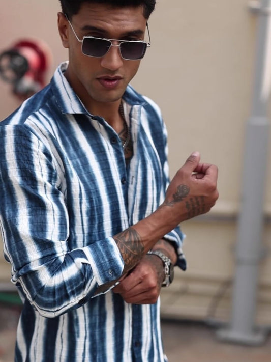 -50% OFFBlue Shades Stripe Full Sleeve Shirt