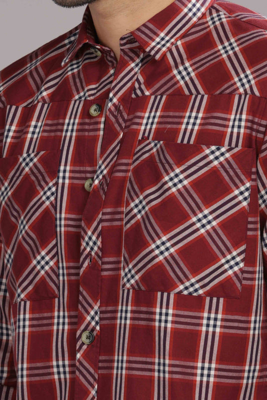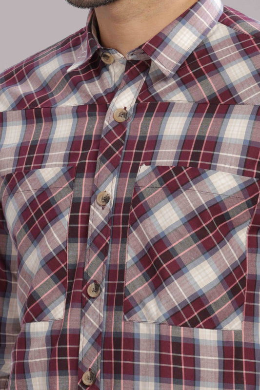 Maroon Double Box Pocket Checks Shirt