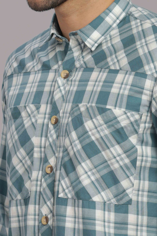 Bluish Double Box Pocket Checks Shirt