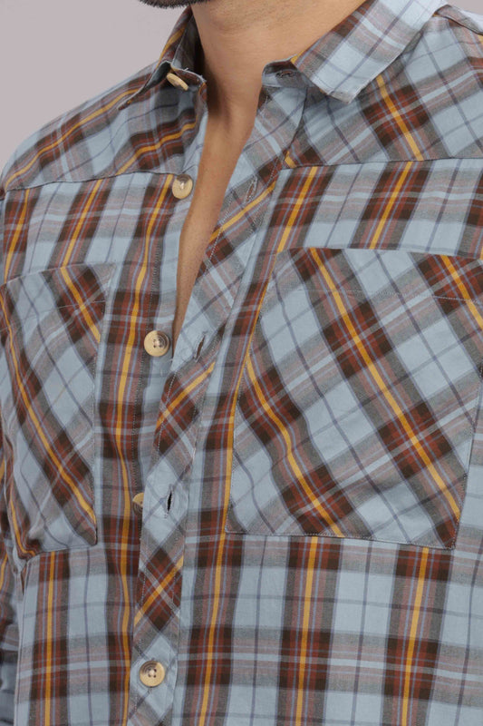 Skyblue Double Box Pocket Checks Shirt