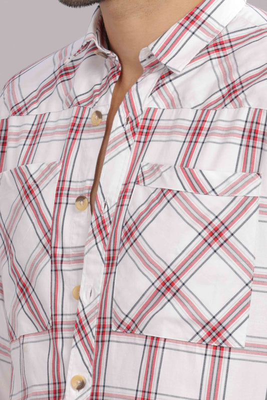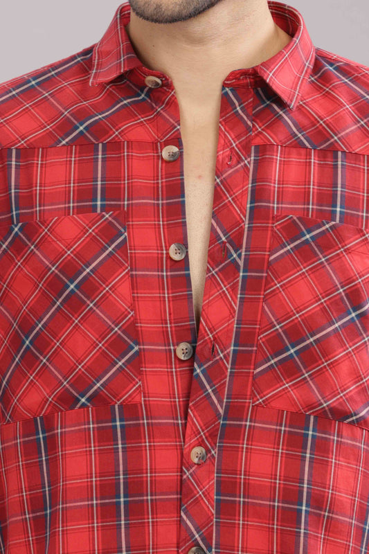 -50% OFFRed Double Box Pocket Checks Shirt