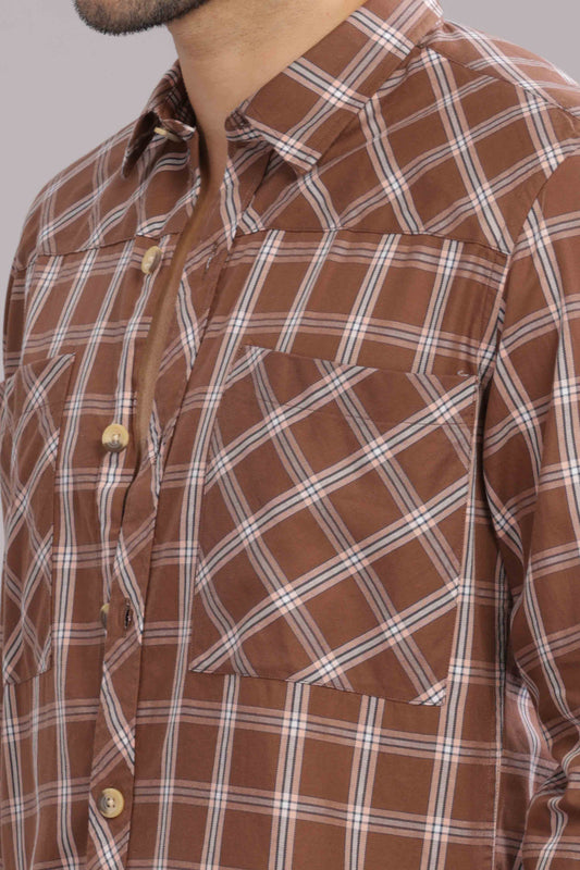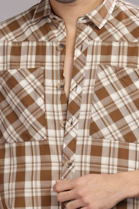 -50% OFFBrown Double Box Pocket Checks Shirt
