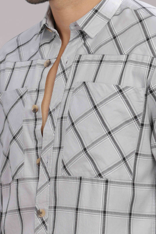 -50% OFFGrey Double Box Pocket Checks Shirt