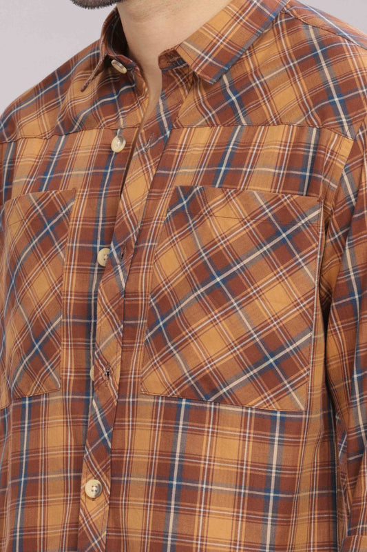 Golden Double Box Pocket Checks Shirt