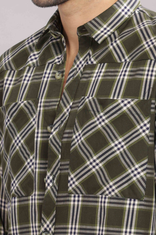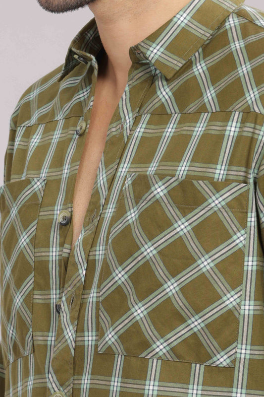 -50% OFFOlive Double Box Pocket Checks Shirt