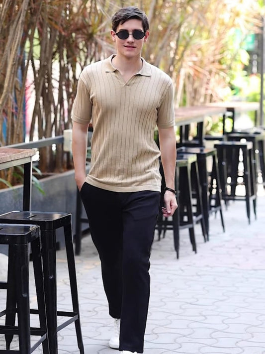 Ribbed Design Polo T-Shirt – Mocha Brown