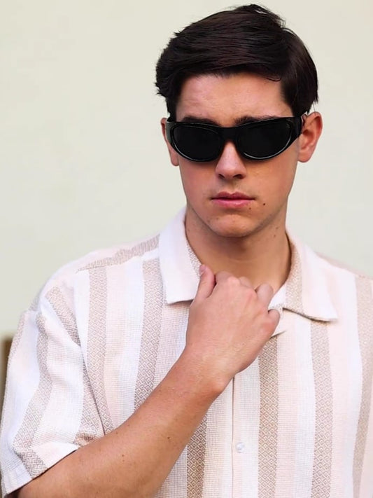 Beige with Dark Grey Vertical Stripe Shirts