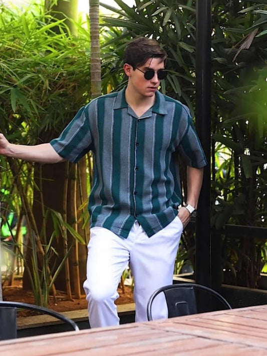 Green and White Vertical Stripe Shirts