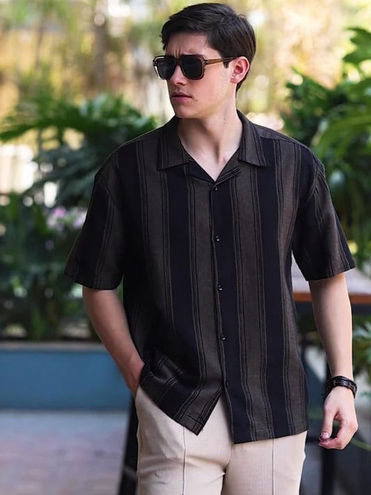 Black & Grey Multi-Stripe Textured Shirt