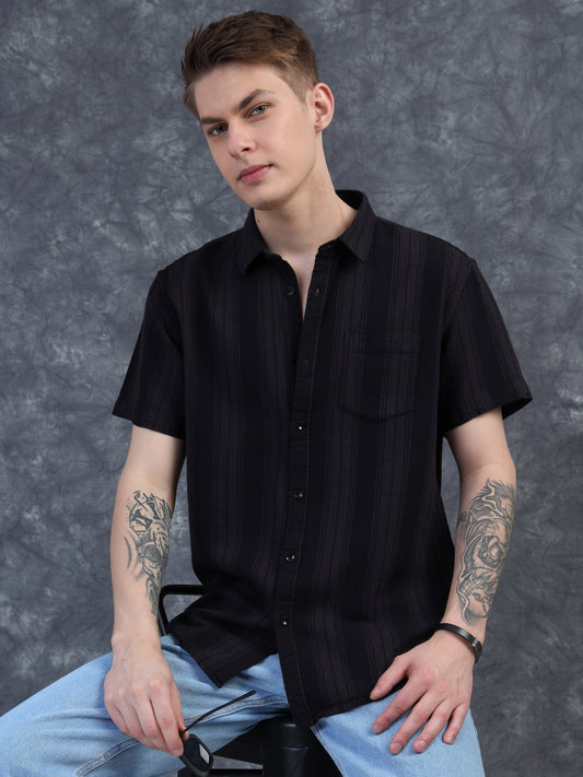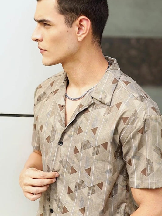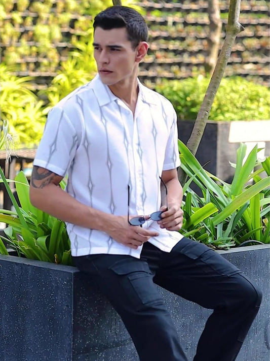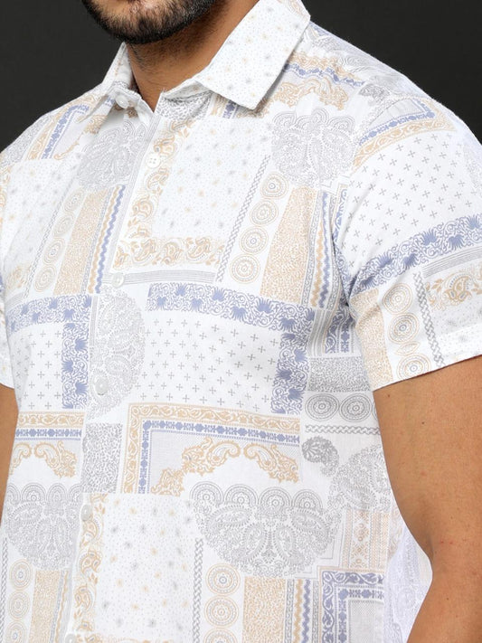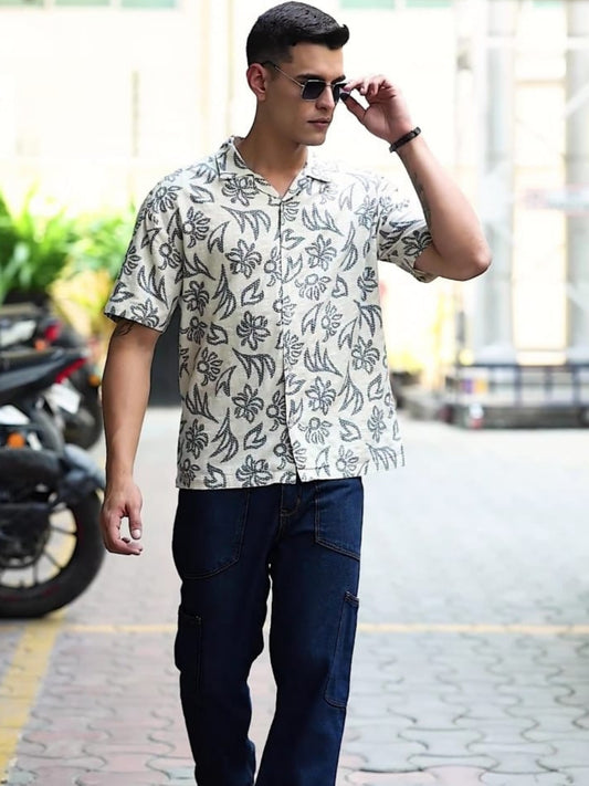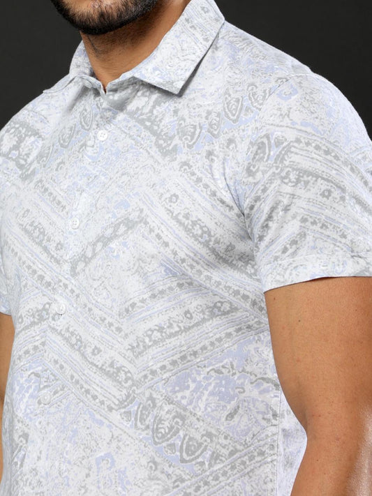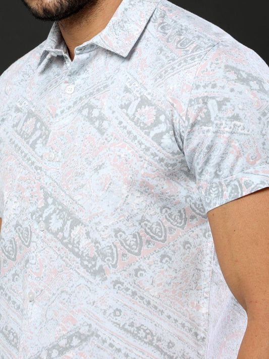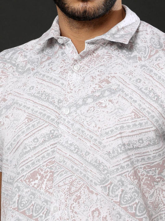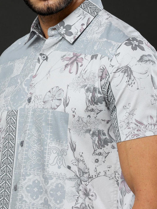 Doodle Print Grey Oxford Flowy Printed Half Sleeve Shirt