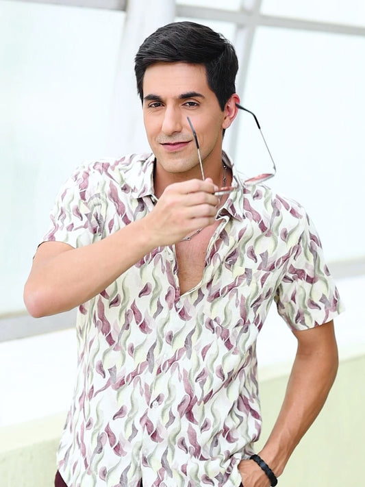 Doodle Print Lavender Oxford Flowy Printed Half Sleeve Shirt