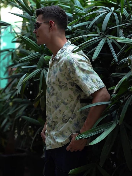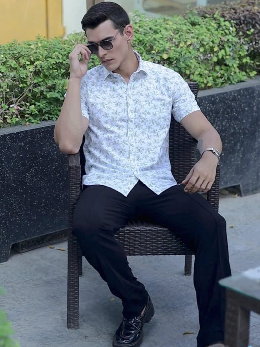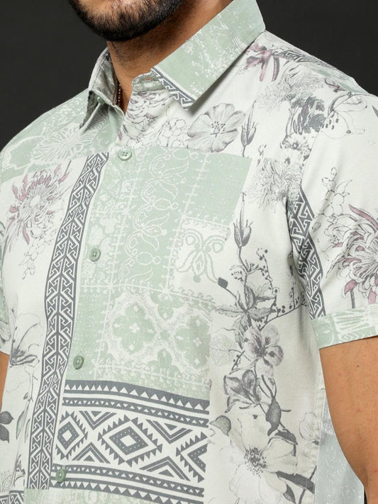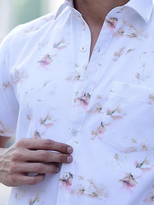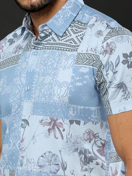 Sunny Blooms Printed SkyBlue Half Sleeve Shirt