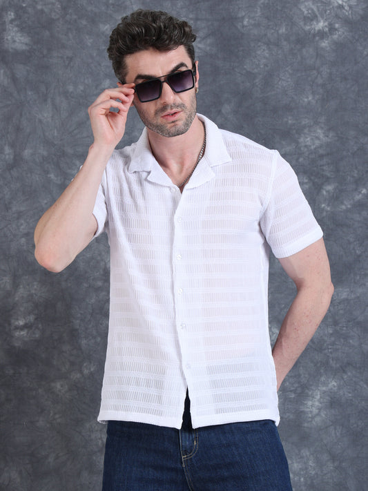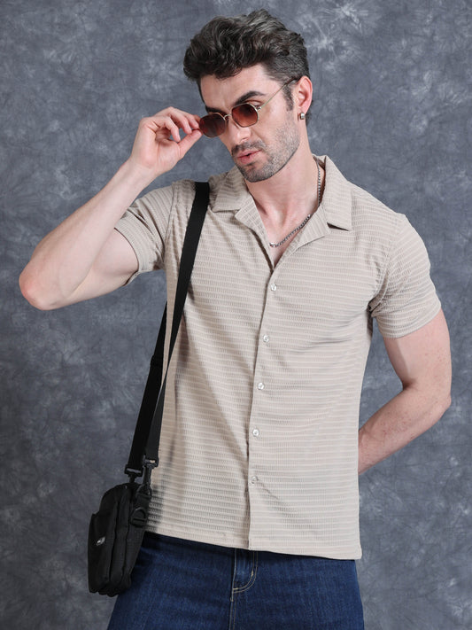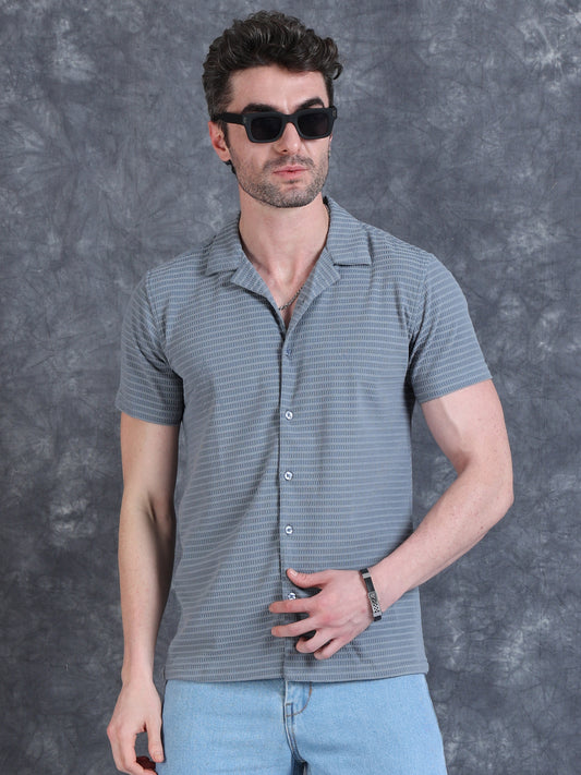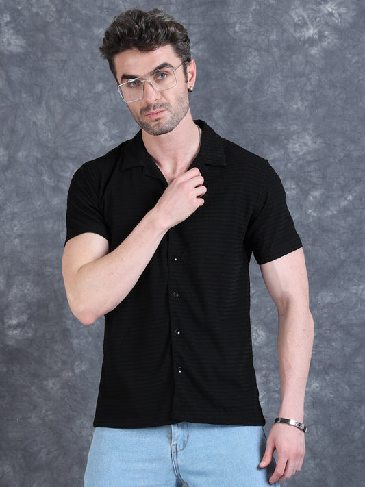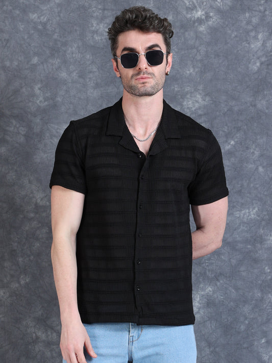 Imported Taiwan Stripe Textured Shirt -Black