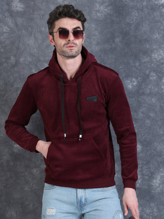 Maroon Velvet Designer Hoodie 420 gsm stretchable