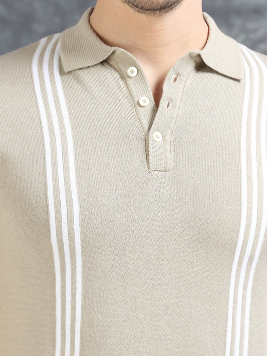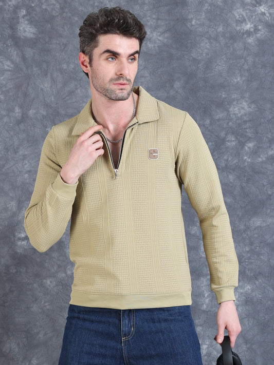 Ribbed Texture Full Sleeve T-Shirt Beige