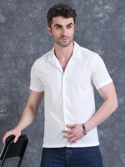 Imported Taiwan Sunset Plaid Textured Shirt -White