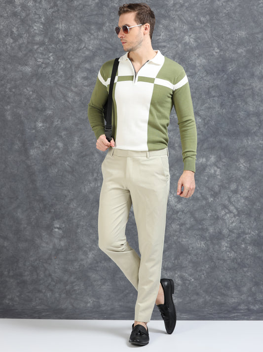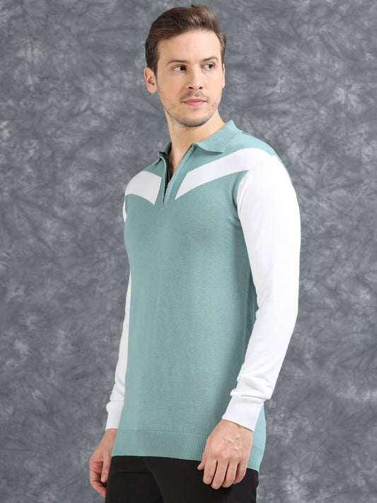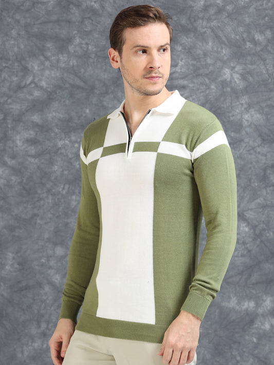 Pannel Design Full Sleeve Zipper Polo - Pistachio