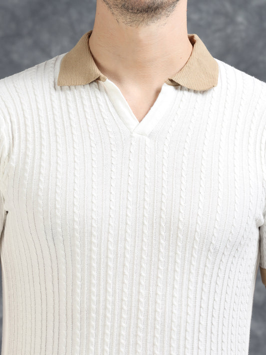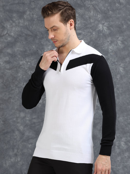 Pannel Design Full Sleeve Zipper Polo - White