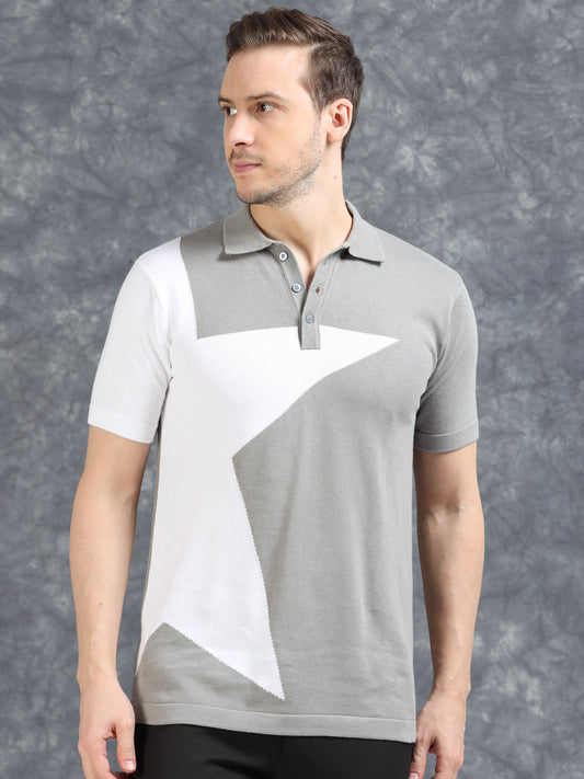 -43% OFFHalf Star Design Polo T-Shirt Grey