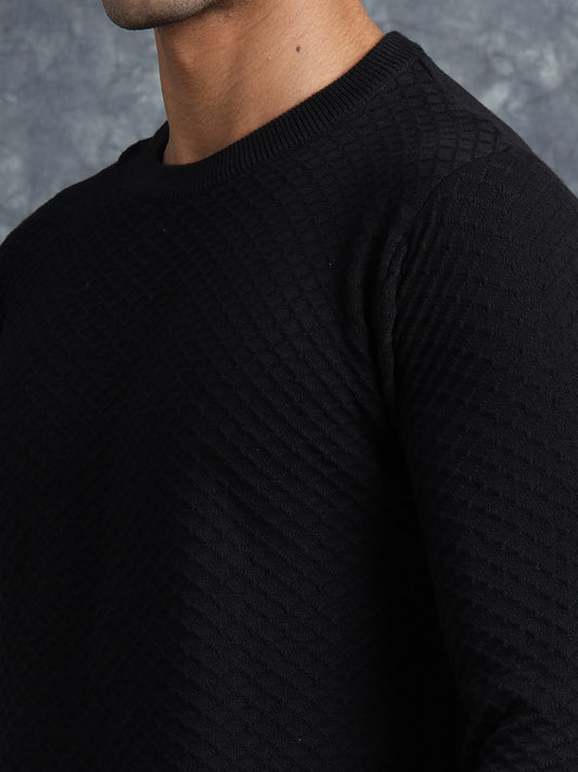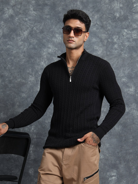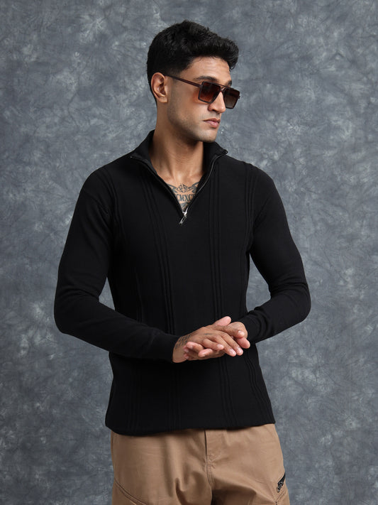 Black Cotton Knitted Turtle Neck Full Sleeve Knitted T-Shirt