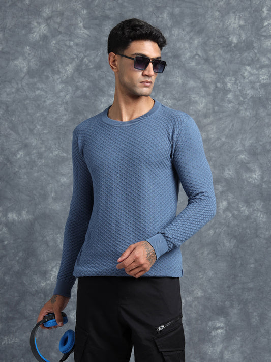 -37% OFFBlue Full Sleeve Knitted T-Shirt