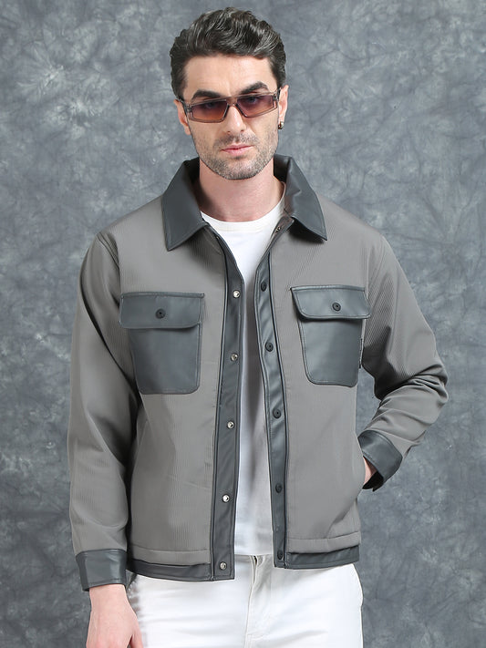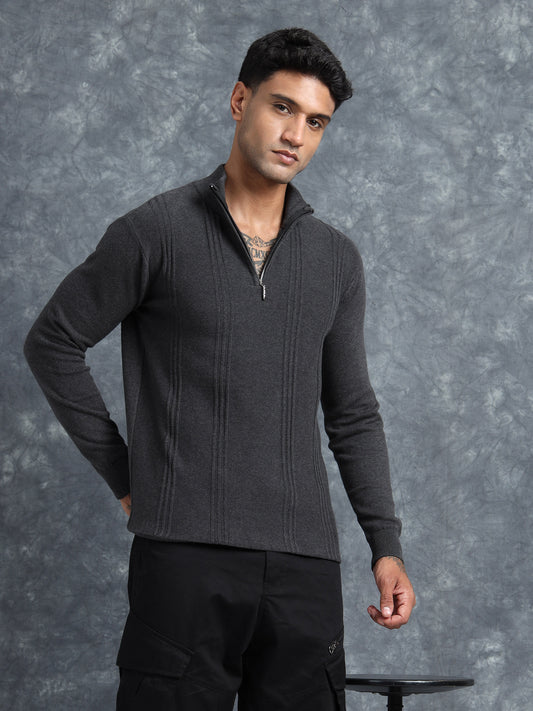 Charcoal Zipper Full Sleeve Knitted T-Shirt