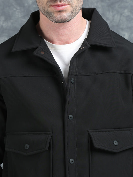 Raw Black Cotton Knitted Full Sleeve Knitted T-Shirt