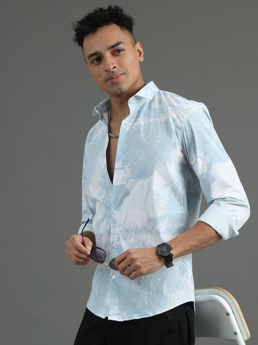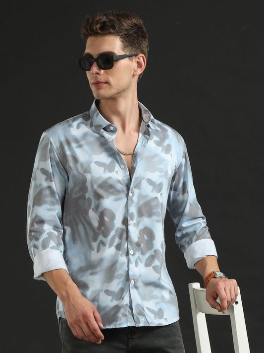-55% OFFGrey Splash Blue Full Sleeve Shirt
