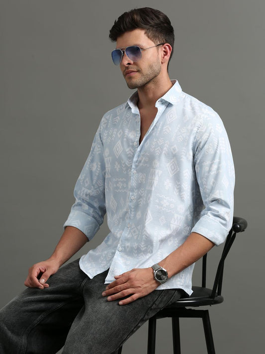-55% OFFGeo Print Blue Full Sleeve Shirt