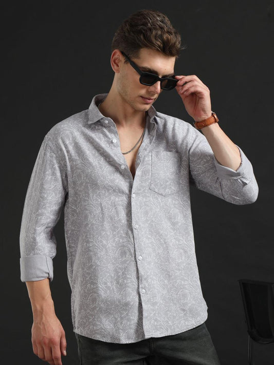 -55% OFFFloral Fusio Grey Full Sleeve Shirt