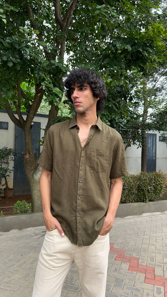 Dark Blue Textured Cotton Half Sleeves Shirt
