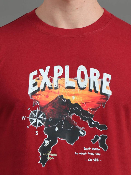 -66% OFFExplore Dark Red Printed Tee