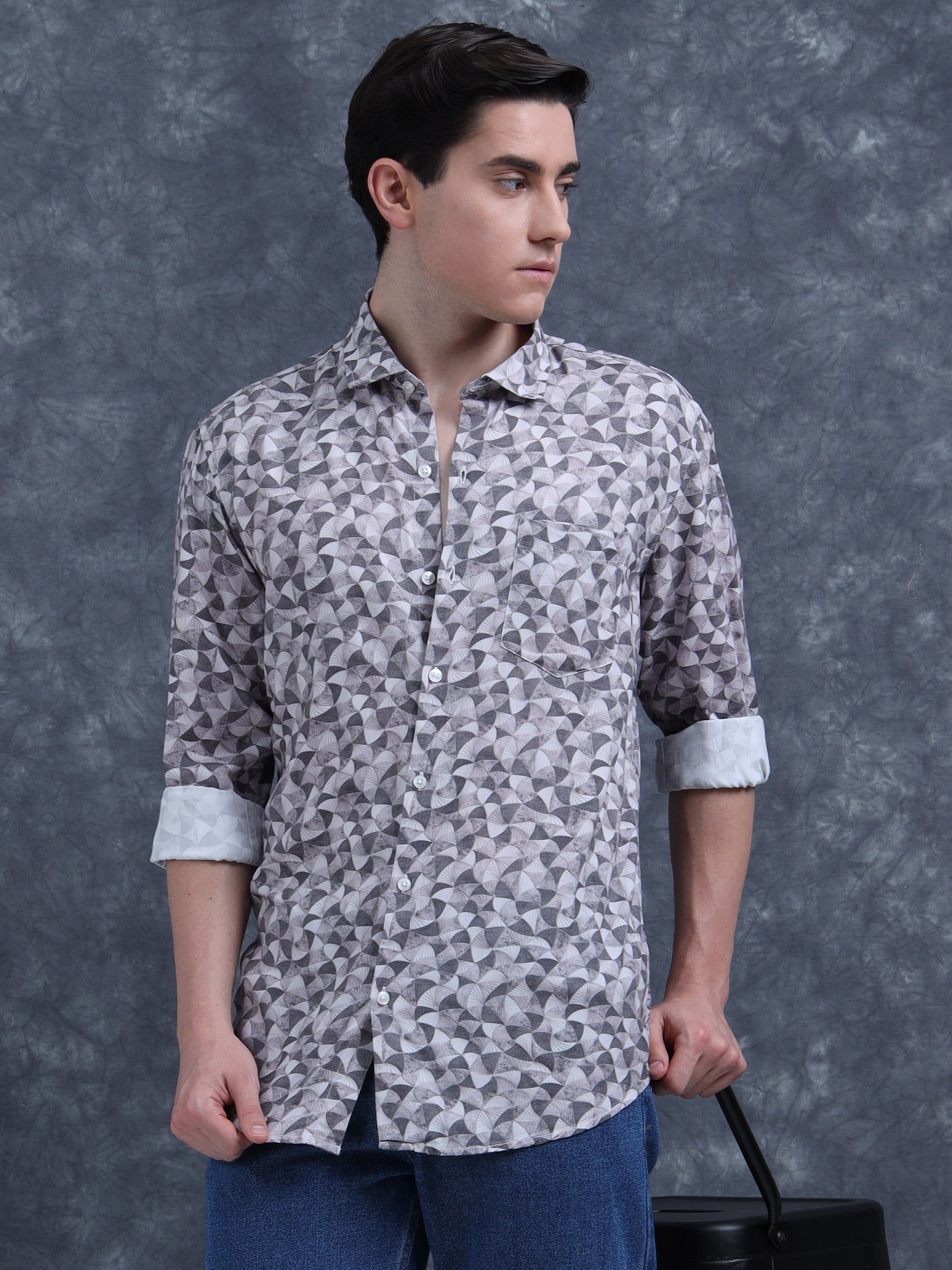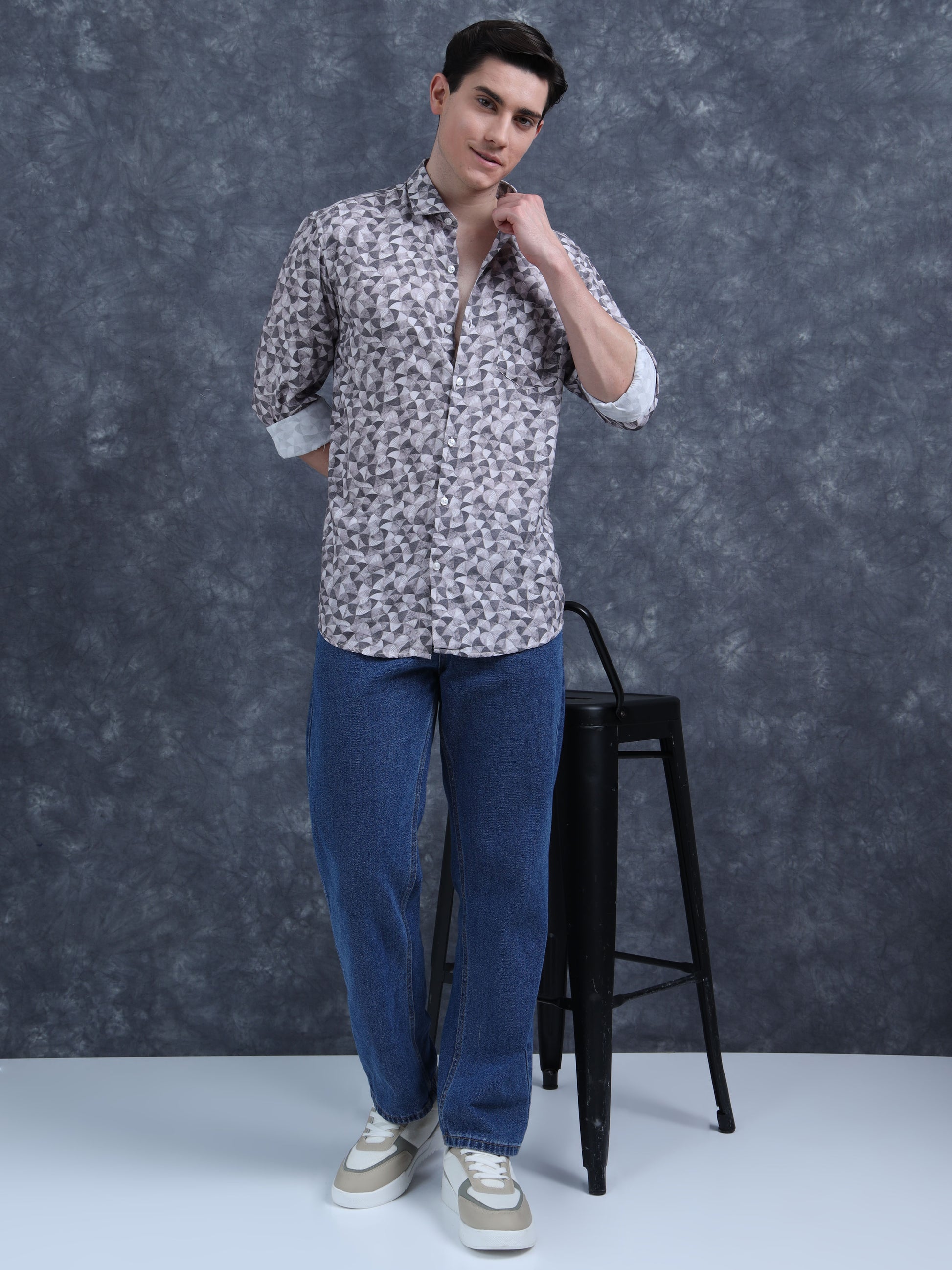 Beige And Black Printed shirt