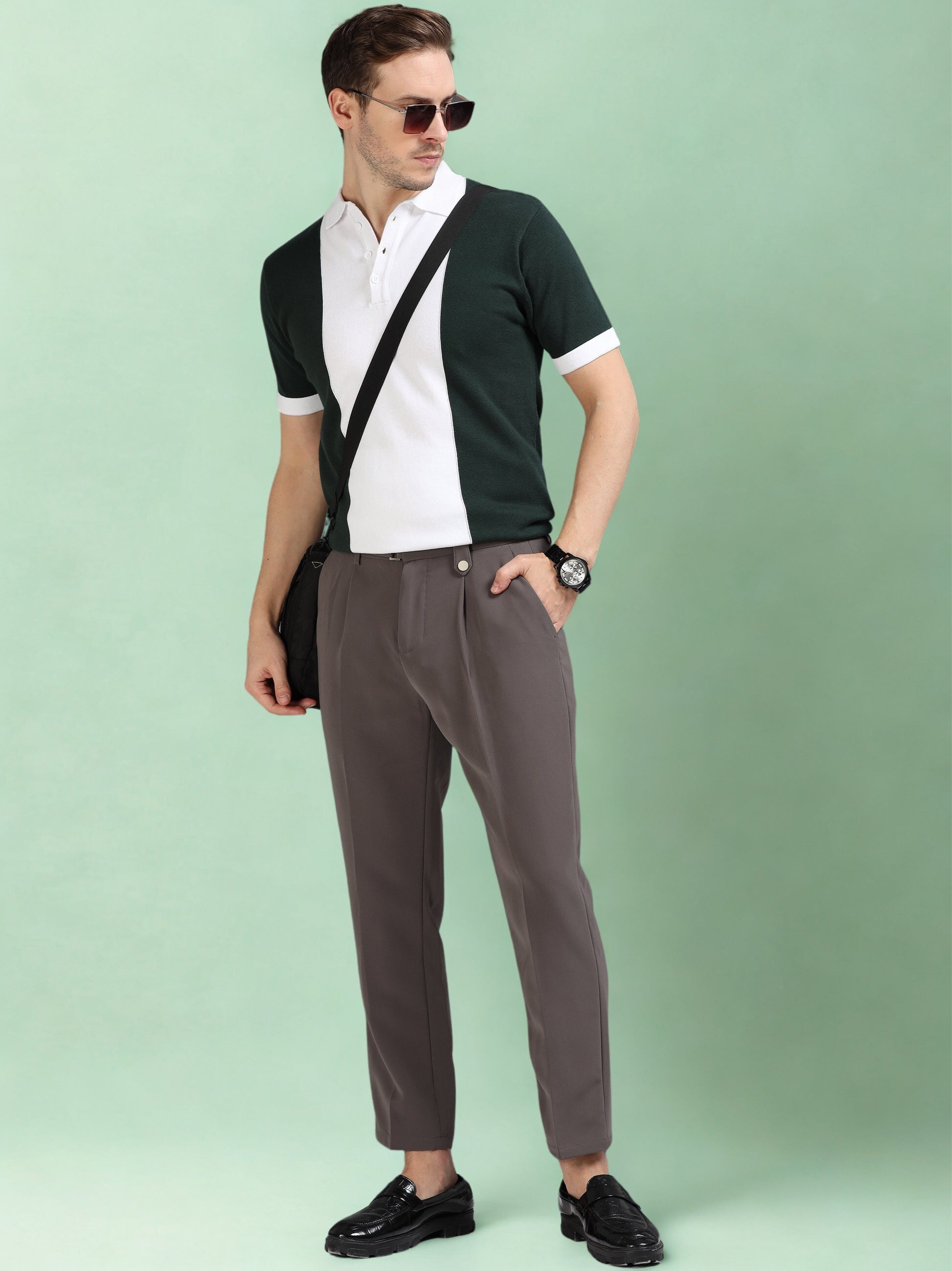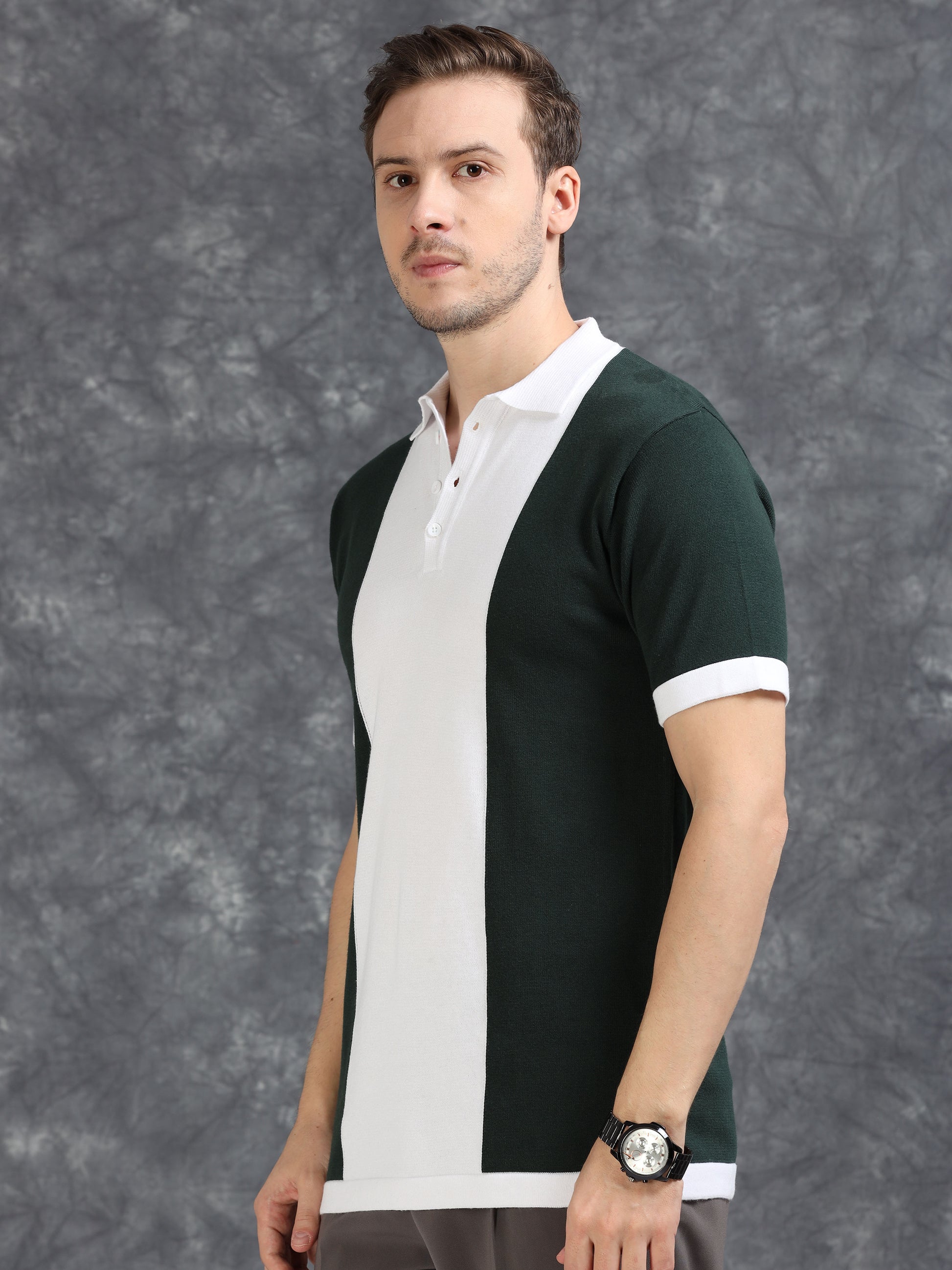 Dark Green Panel Design Polo T-Shirt