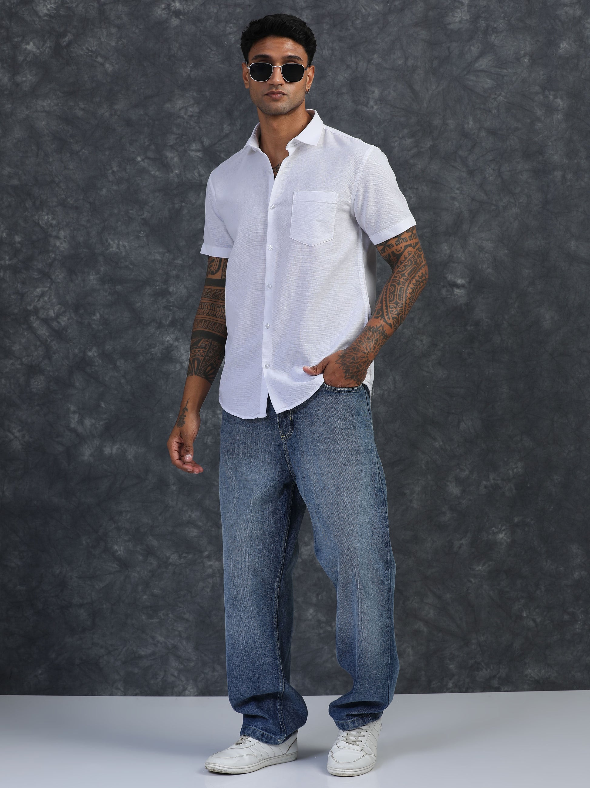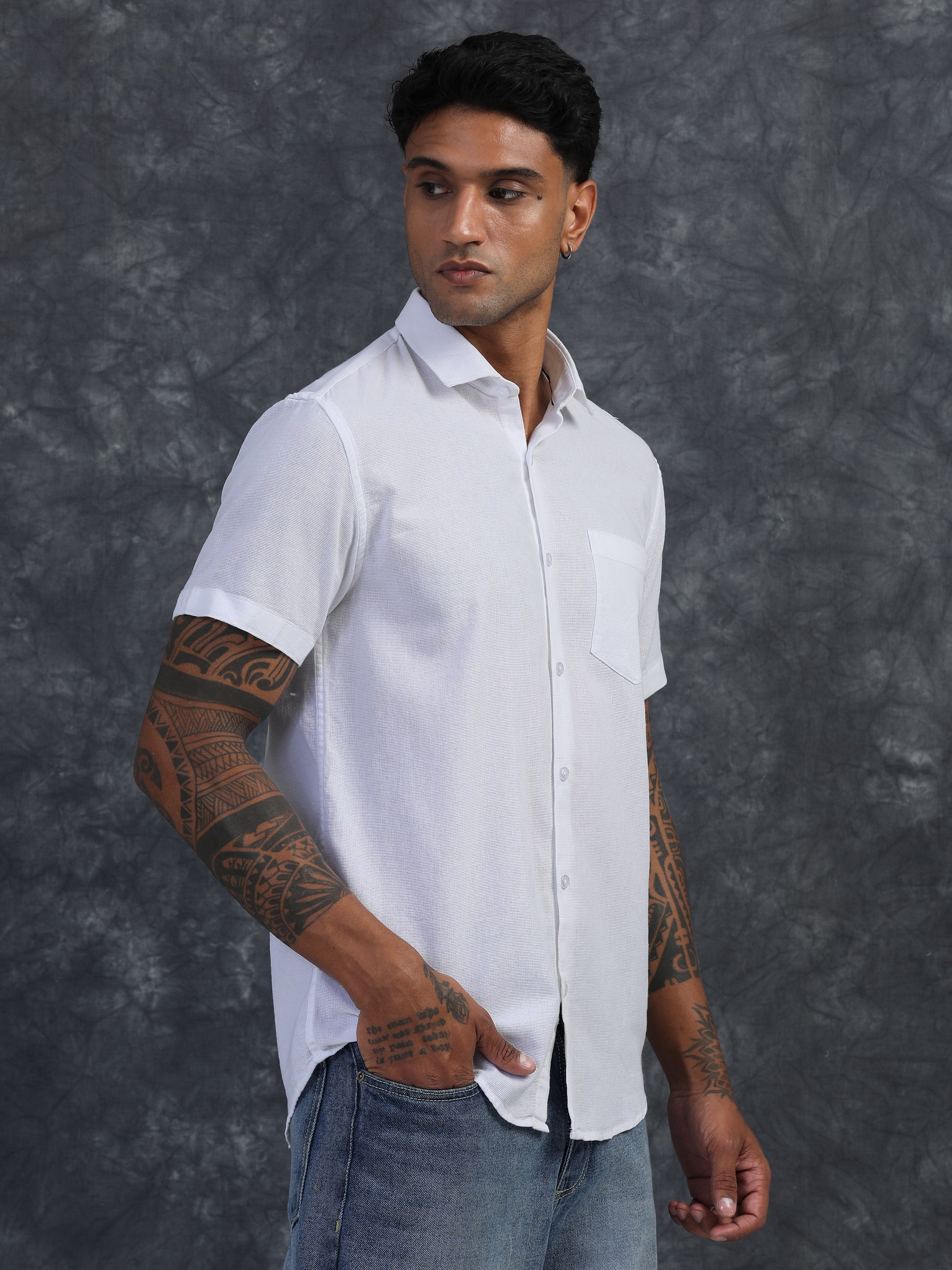 PURE WHITE TEXTURED FABRIC HALF SLEEVES SHIRTS