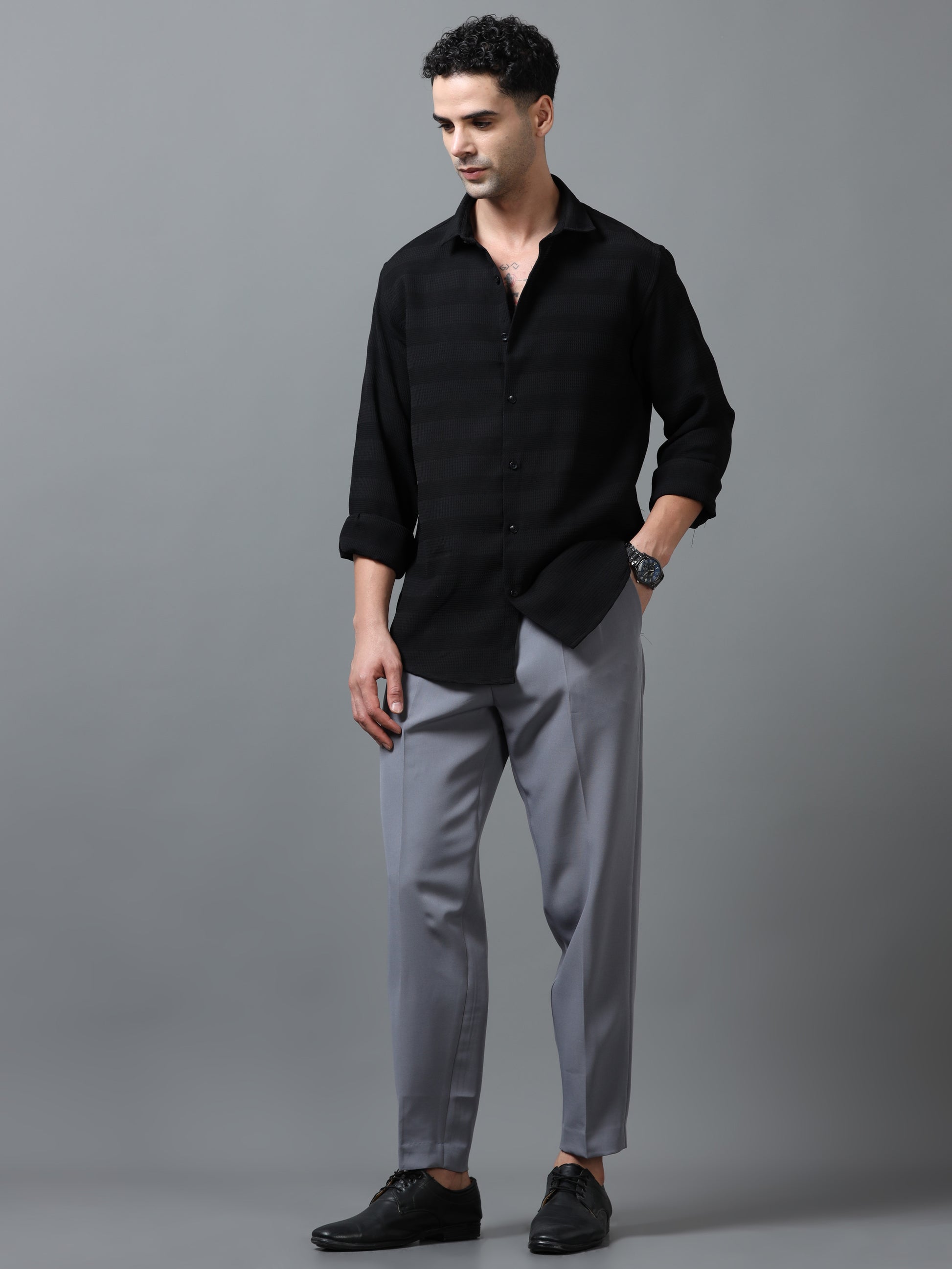 Black Imported Textured Shirts