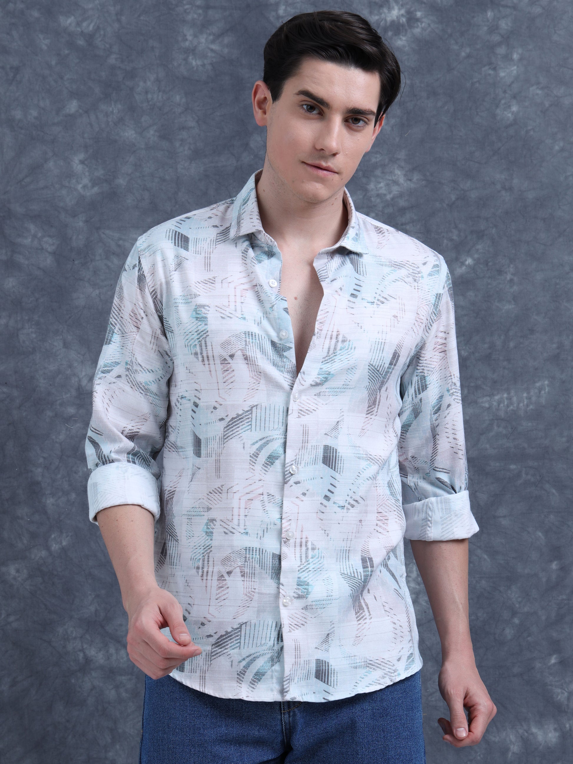White and Blue Printed Shirt