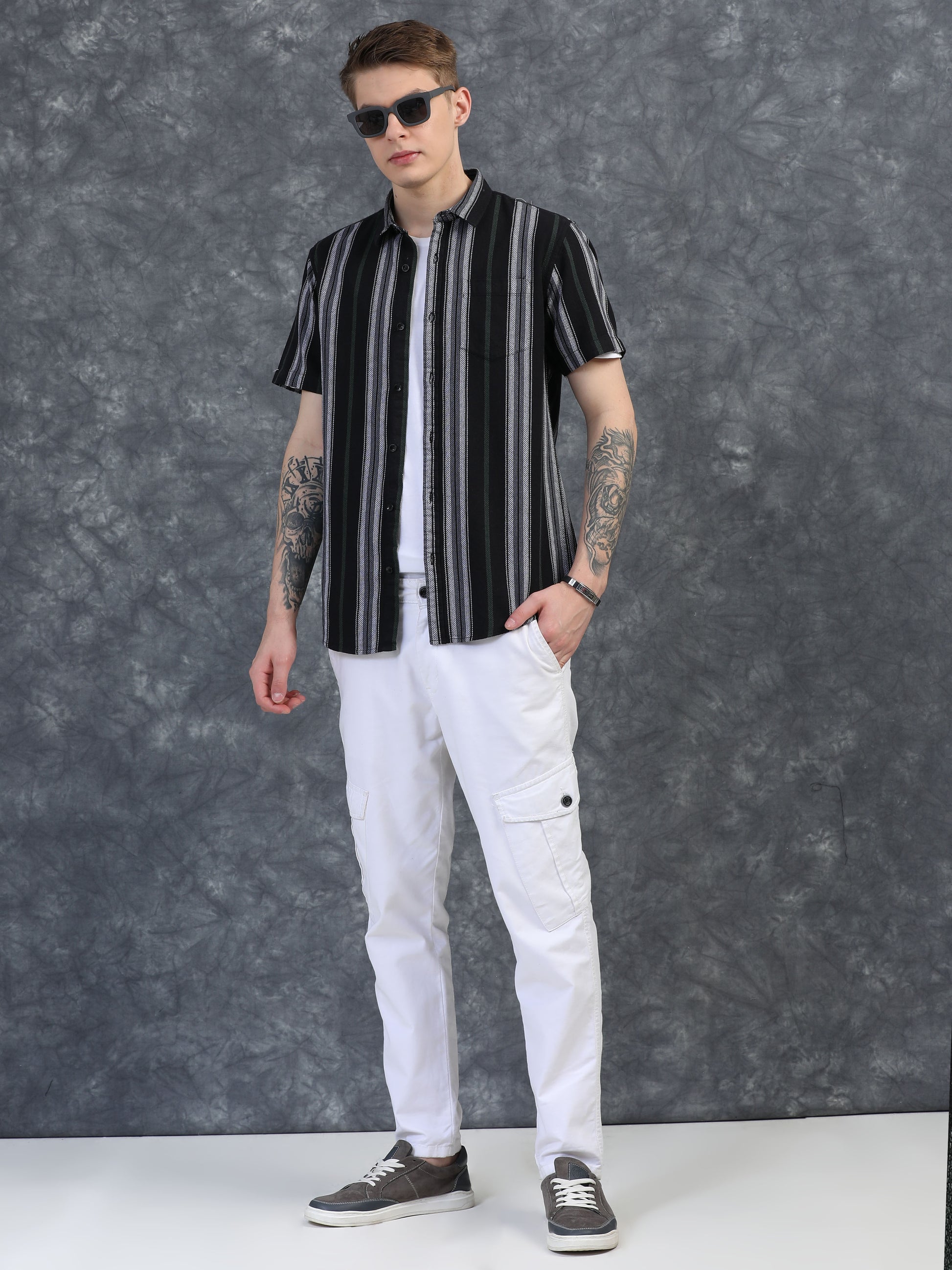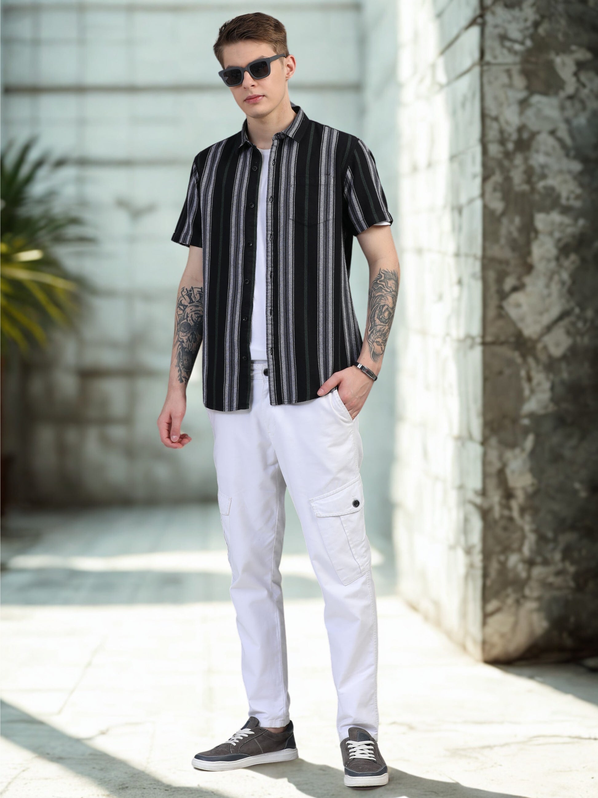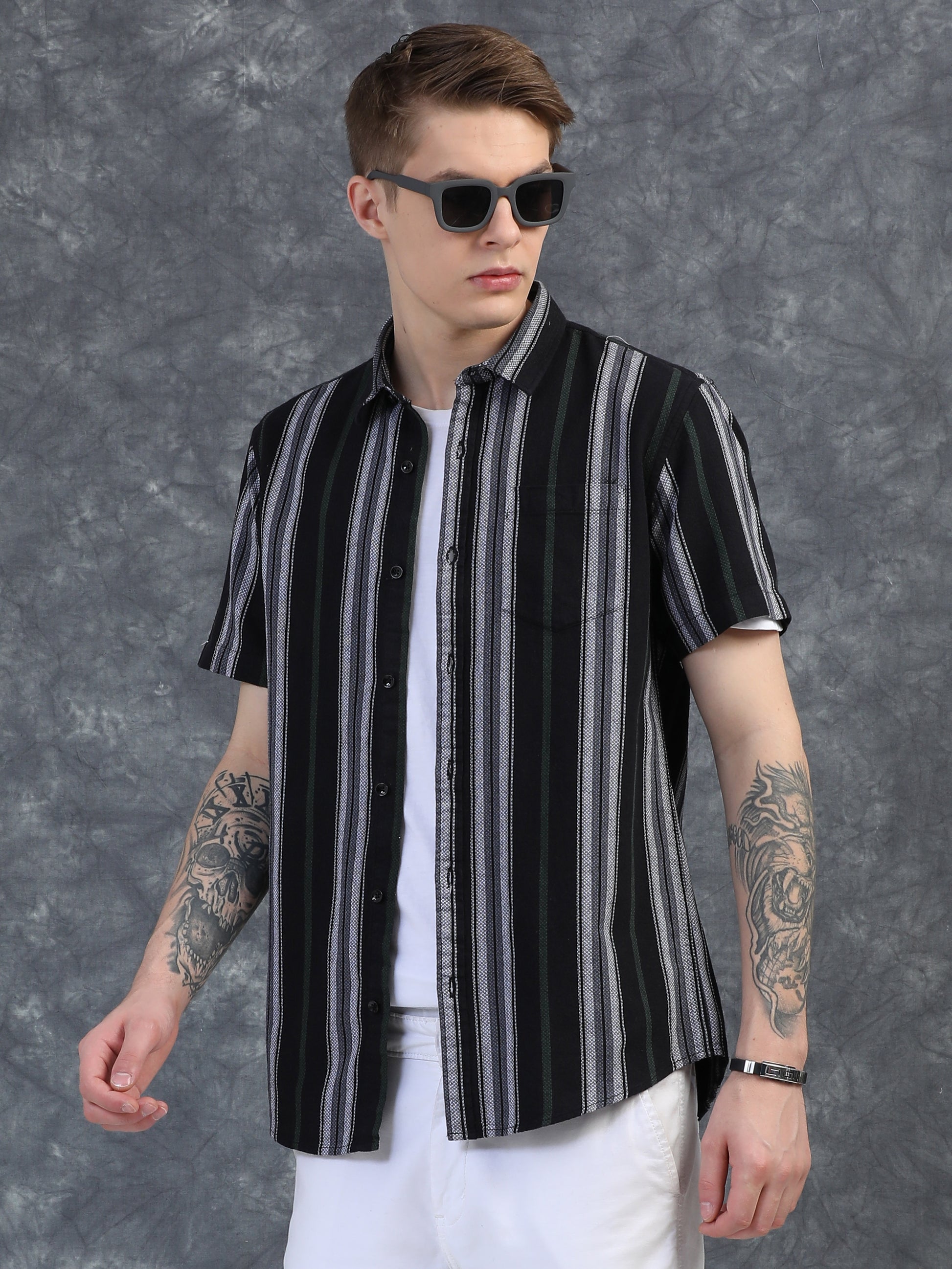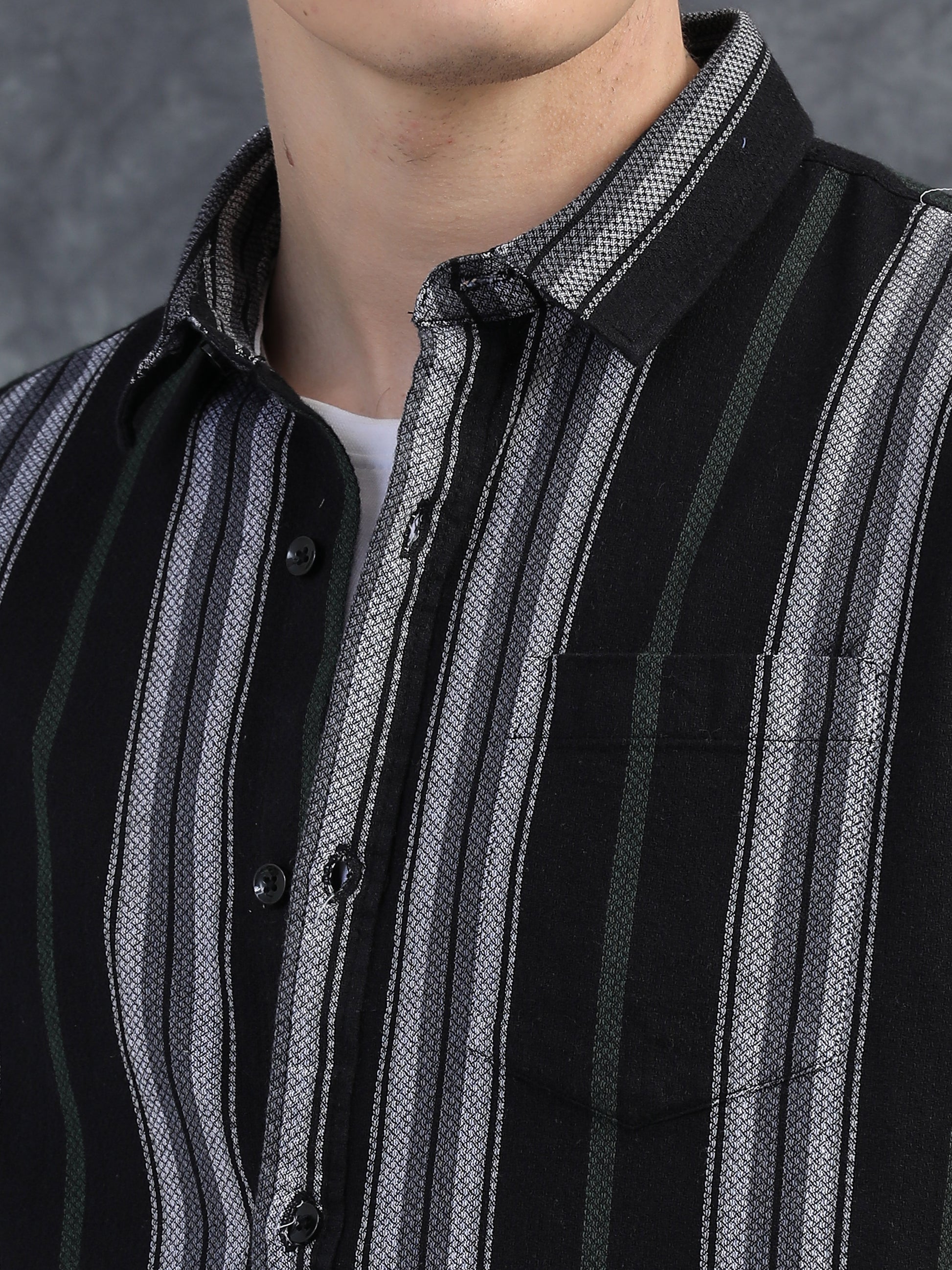 White with Green Vertical Stripes Shirts